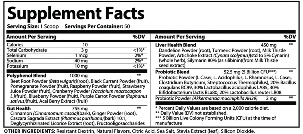 Polyphenol Complex 🍇 – Plant-based compounds that calm bloating, fight toxins, and feed your “good” bacteria.